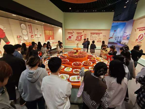调研伊始,师生们深入盱眙尅街文化街区,详细了解街区的主题背景、文化特色及现有旅游资源,深入挖掘尅街的独特文化符号与商业潜力。同时,团队还参观了盱眙龙虾博物馆。龙虾博物馆作为盱眙的标志性文化地标,集中展示了龙虾产业的历史沿革、文化内涵及产业链条。在调研的过程中,学生们不仅详细了解了龙虾从地方特色到全国品牌的发展历程,并通过对龙虾文化的深度解读,进一步认识到地方政府如何通过文化赋能产业,打造具有全国影响力的文旅品牌,为他们的文创设计提供了更多灵感。